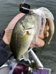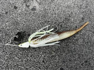 念の為、まずは沖のウィードフラットを3/4ozヘビースピナーベイトのスローロールで探ってみるとヤングは反応するもBIGワンの動きがなかなかない状況…