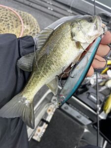 グラスピースFLEXや3/4ozスピナベ、3〜4mクランクなどでローテーションアプローチ。