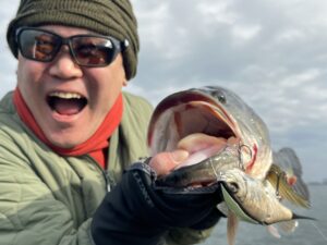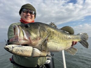 このような個体が釣れる可能性が高い厳寒期シーズンに、スーパービックフィッシュ率がすこぶる高いビックベイトゲームでトライし、一発ビックの可能性を最大限に引き出した一撃です!