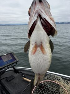 さらに突き上げアタックを誘発させて、57㎝ 3400gキャッチ成功です!