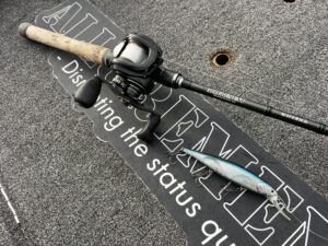 今回は4ozクラスのルアーにも対応するプロトロッド、ALLUREMENT 76XH《SUPER SAVAGE》を使っていただきビッグベイトゲームを組み立て。