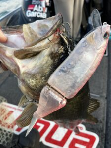 奥様はベイトタックルを扱えるので、一発BIGの可能性が高いビッグベイトゲームにもトライしてもらいました。