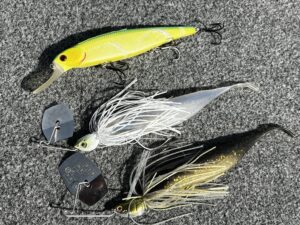 2.5m前後のハードボトムシチュエーションでセレクトしたのは、ワイヤーベイト&ノヴェル(SPチューン)。